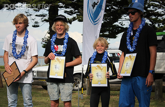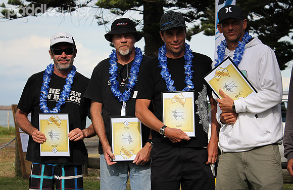 Open // (L-R) Glen Turner (out of shot) - 3rd, Kai Bates - 2nd, Dan Cleary - 4th, John Christensen - 1st.