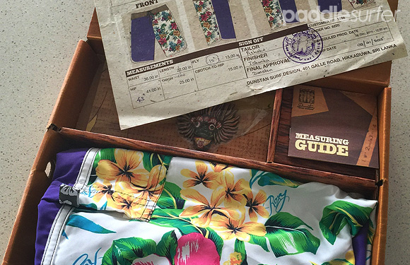 Unwrapping the protective bubble wrap, I was presented with a beautiful faux wooden box covered in Dunstan artwork. I lifted the lid and found my awesome shorts, just as I had designed them along with my order form, a book on the history of Dunstan Surfwear and a guide to all the surf breaks in Sri Lanka - all beautifully printed on recycled paper. They even chucked in a Dunstan fridge magnet which seemed to be impregnated with incense and made everything smell like a traditional Sri Lankan village. My senses were on overload and I was brought back to that childhood memory of receiving my very own, custom made boardshorts from that little Balinese man so many years ago. It was a great memory.