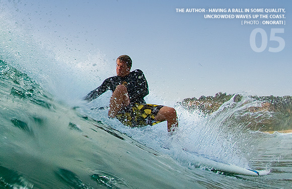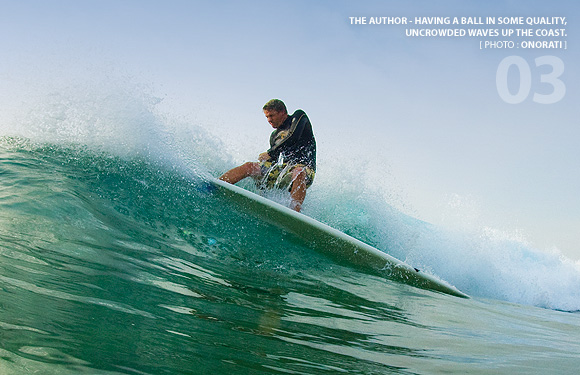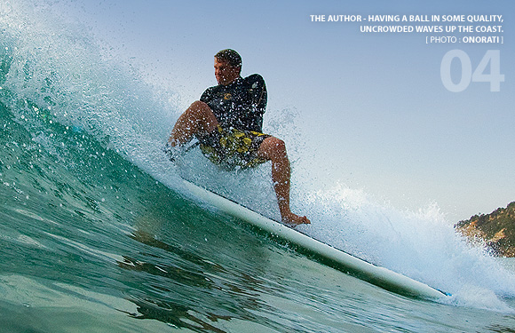 You'll often have more energy and have no problems getting up for the early. It doesn't matter if you are on your normal board, surfing the same ocean and riding similar waves to the ones at home - but you'll often surf better. Ever found that? Some sports psychologists probably know exactly what this is all about - but to me it just seems weird ... and cool.