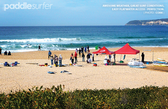 8:40am - The first heat of the first comp of the first SUP club in NSW hits the water. We are running only ten minutes behind schedule - I'm happy about that. Everybody seems to be pushing their limits as there are some awesome manoeuvres being pulled off. Very impressive stuff. I am worried that I'll be knocked out of my first round heat. I didn't expect everyone to be surfing so well.