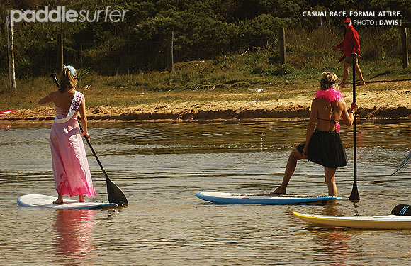 11:35am - Fairies, ballroom dancers, bridesmaids and a bride start to gather around the edge of the lagoon. I think this is a strange time and place to hold a wedding until I notice some of them are wielding paddles and picking up race boards. It's the ever effervescent all-girls paddle crew preparing for the 1km race. Some of the young, local shortboarders who were giving us grief out in the water are now sitting on the sand dues watching with enthusiasm. I'm sure they are not so against the Sydney Paddle Surfing Club invading their beach now. JB Mel is first across the line - of course. The dedication and commitment of that girl would put even the most hard-core guy to shame.