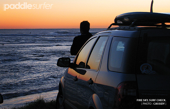 Wake to the dulcet tones of my son's recorded ringtone. "Wake up dad, wake up dad, time to get up dad". Seemed like a fun thing to do at the time. Stupid idea really. Makes me mad at him every time it goes off. Pitch black. Very tired. Resurgence of energy and awakedness once I remember the surf forecast from last night. Get up. Shut bedroom door very, very carefully. Need to limit all sound waves to still sleeping ears. Throw on previously loaded, surf check attire. Gather keys, wallet. Gather wetsuit box (previously loaded with wetsuit, legrope, essential accessories), paddle, board. Load into/onto car, quietly. Lightening sky. Not lightening as in bolts of, but lightening as in getting lighter. Perfect silence. No wind. Perfect for surfing. Silence broken by distant plover. Ar-ar-ar-ar-ar. Start car as quietly as possible. Hmmm? Drive off as quietly as possible. The road is like one of those holocaust movies where all civilisation has perished except for me. Still have to wait at red lights. Arrive at the beach in first place. Pole position in carpark. Golden hues start to appear on the horizon. Nice waves. Still no wind. Very nice waves. Unload gear. Crap, no towel. Previously loaded wetsuit box was supposed to include a towel. No towel. Have to nude up. Very quickly put wetsuit on. Lucky it is early. Lock car. Hide keys. Walk to waters edge. Odd woman approaches from the south. Still in last night's going out gear. Including high heels. Gets closer. More mutton than lamb. Please don't talk to me. Says hello. Say hello back. Twelve hour makeup looks worse for wear. A bit frightening really. Luckily, continues her journey north to ... wouldn't have a clue. Paddle out. Water chills my toes. Catch some nice easy ones. Cruising. Big, slow turns. Focus on style rather than radicalness. Still dry. Still warm. Bright reds and yellows from the east. The day is officially open for business. A few of the boys arrive. On SUPs too. That's good, I won't feel bad having the advantage. The police arrive and follow my new friend on her journey up the beach. That's weird. Full strength sun removes the chill from the autumn air. Dry, black neoprene heats up on the sunny side. Still cold on the dark side. Sun on face feels like it's burning. No sun cream applied due to lack of sun on arrival. Should have thought ahead. More super fun waves with the boys. Still an exclusive SUP bank. Shortboarders to the north and south but none here. Might have scared them off. No complaints. Push each other up the performance scale. Ooooh, that looked nice - I'll try one of those. Critically executed power turns gain a higher priority than staying dry. We don't care about a potential cold water dunking if it means impressing a mate. Two hours of fun wave exchanges with friends. The sweet smell of frying bacon from the café on the hill indicates it's time to head in. Crap, still no towel. Drive home with wet wetsuit still on. Damp car seat for days.