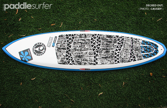 Paddling this little puppy is a breeze. It tracks really well (with my 6" centre fin) and it's got good stability. None of the surfs I've had it have been really clean (in fact most of them have been quite choppy), yet I've not a problem standing on it at all. I've ridden bigger boards which have been heaps harder to balance on while you're waiting out the back. The flat deck feels nice under your feet and gives a great base to move your feet around on.