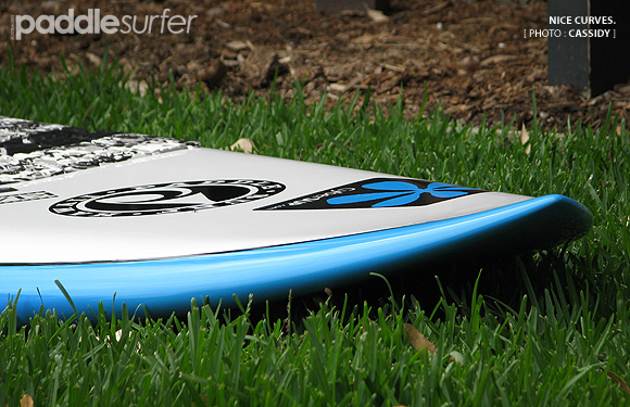 There's not a heap of nose lift but just enough to keep the nose dry when taking steep-ish drops or coming down from a reo. The fact that it's pretty flat throughout means it planes really well and holds it's speed and momentum through turns. It's easy to connect bottom turn, cutback, foam bounce, back into another bottom turn ... all with speed and flow and as if it's just one manoeuvre - nice.