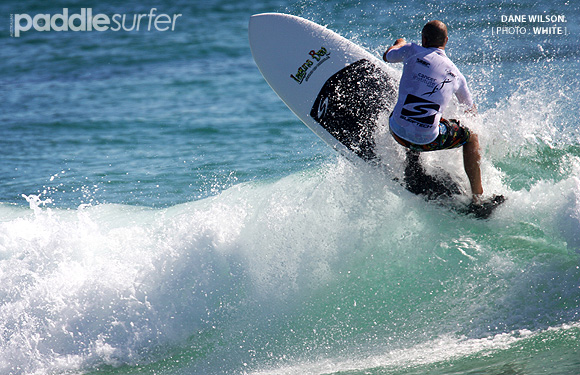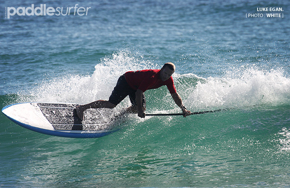 Former ASP World Tour competitor Luke Egan (Coolangatta, Qld) was at his powerful best this morning, throwing plenty of backhand spray on his SUP to easily beat Geoff Breen (Noosa).