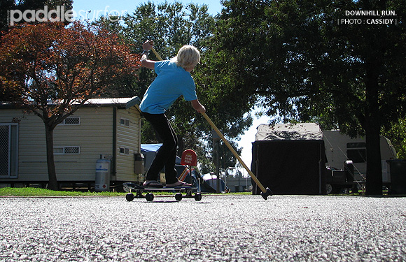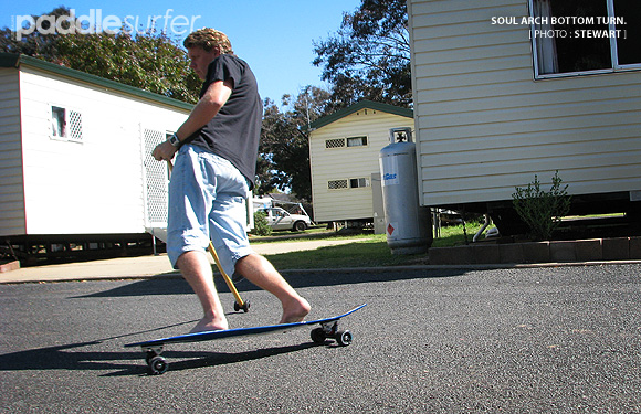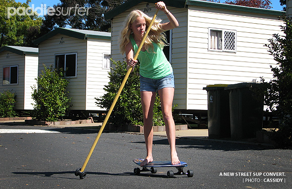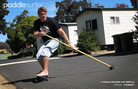 It is a good thing that street SUPing is quite a close cousin to real SUP surfing - bottom turns, cutbacks and even power slides can be performed while imagining you are on a wave. Even 'paddling' back up hill can be correlated to flatwater paddling (the stroke is slightly different but similar muscle groups are used).